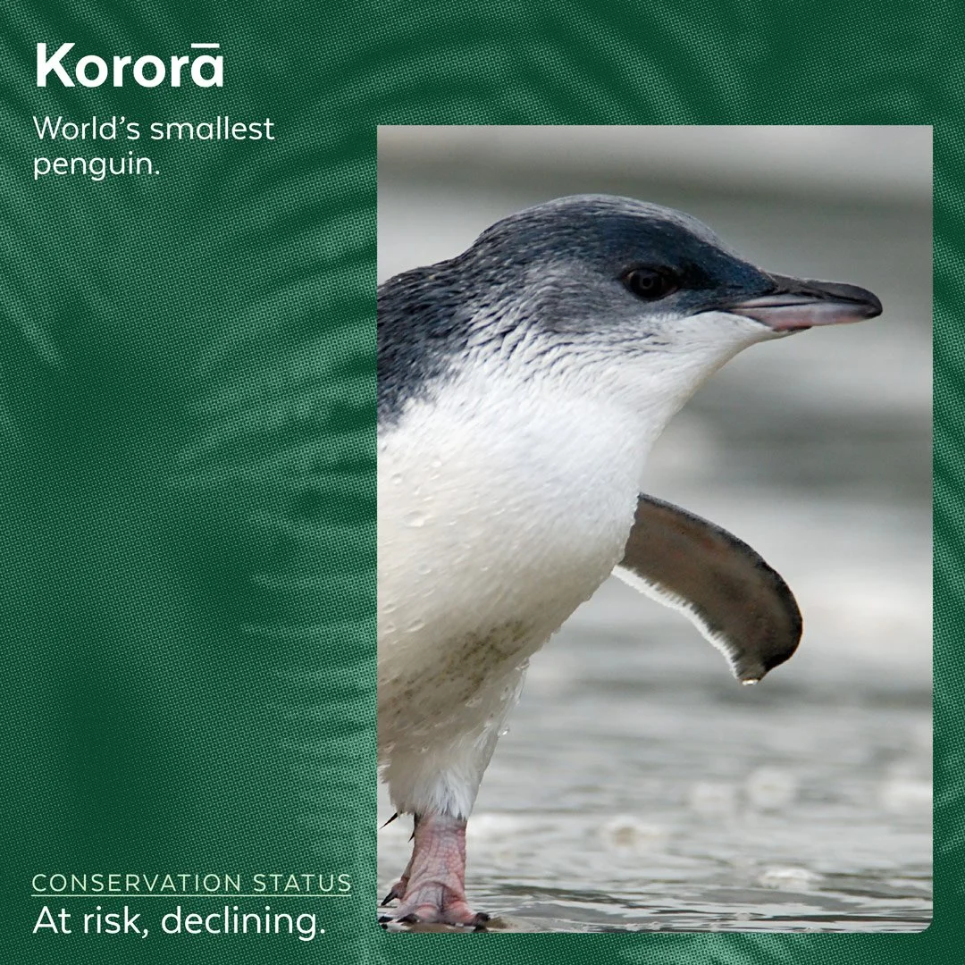 Kororā are the world's smallest penguin species at just 25cm high! These primarily nocturnal birds leave their burrows at dusk to feed at sea and return at dawn. They can be quite noisy, with guttural calls sometimes keeping coastal residents awake at night!