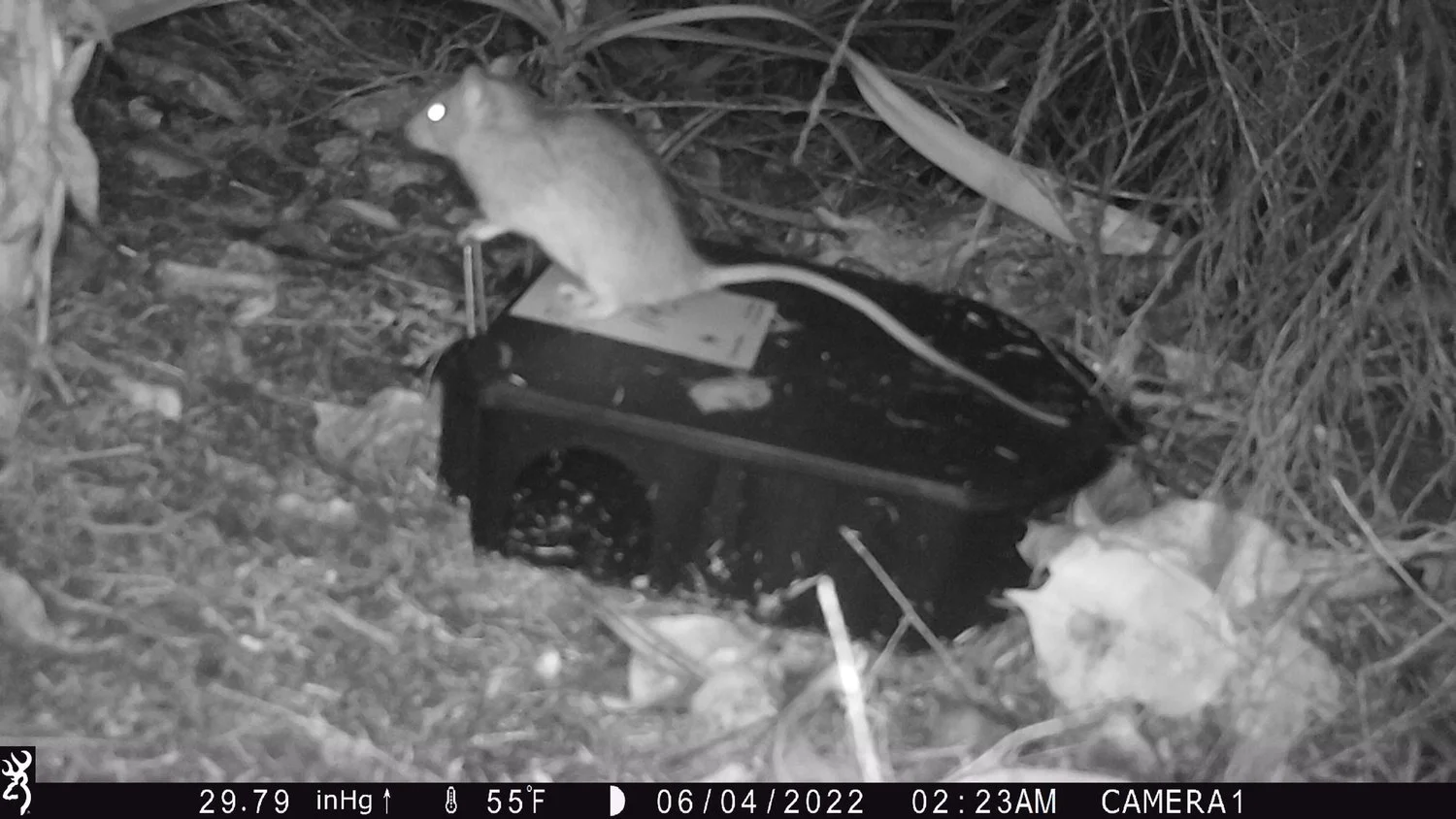 A crucial part of rat eradication programmes is the monitoring and detecting of rats. Trail cameras are a very sensitive detection tool and are able to detect rats in low density such as survivors and invaders after an eradication attempt.