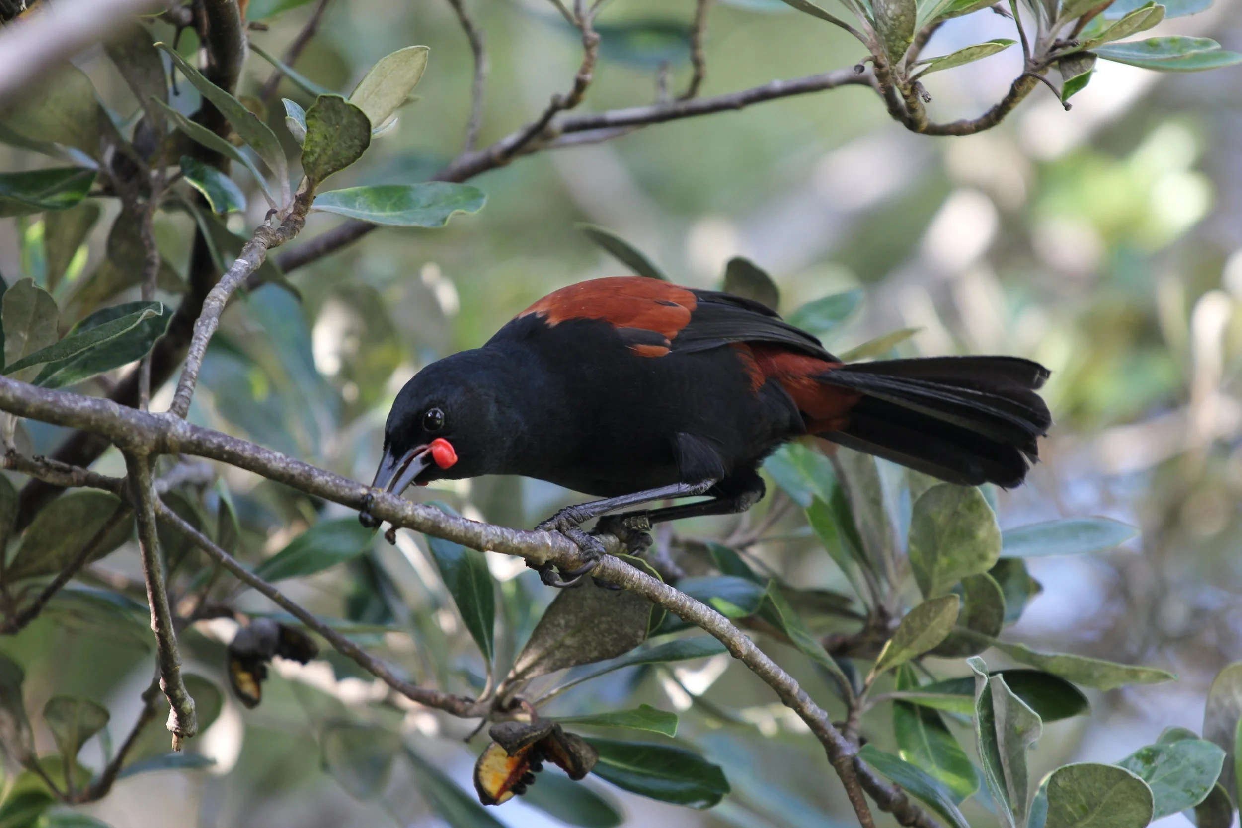 The recovering saddleback (tīeke) and bellbird (korimako) now reside on predator-free Tiritiri Matangi Island. Photo by Charlie Thomas.