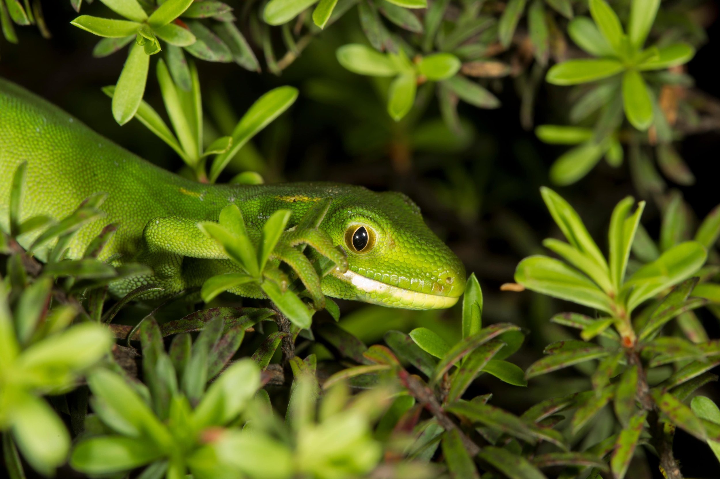 Like most of our native flora and fauna, our geckos have evolved in isolation since Aotearoa split from the supercontinent Gondwana about 80 million years ago. This resulted in Aotearoa’s geckos acquiring some unique characteristics, being one of the most southernmost geckos in the world. One such adaptation to cold is that they give live birth rather than laying eggs, as it would be too cold for eggs to survive. Carrying live young also means that native geckos produce fewer offspring, but individuals are longer lived (up to 53 years!). They are also able to stay active at temperatures as low as 4°C, which is impressive for a cold-blooded animal.
